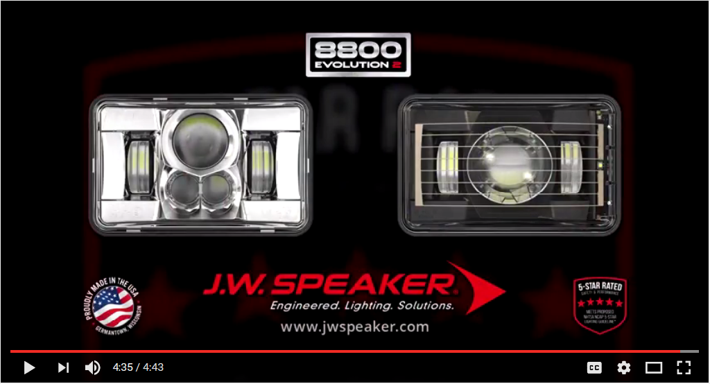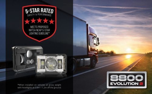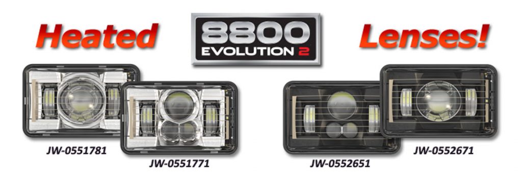 J.W. Speaker Corporation developed their newest generation 4″ x 6″ LED heated headlight for the heavy-duty trucking market. This new headlight, referred to as the Model 8800 Evolution 2, is the industry’s first to meet proposed National Highway Transportation Safety Administration (NHTSA) guidelines for a 5-Star NCAP-compliant low beam headlight.*